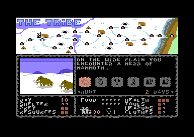 I gave this game a try last not on my Ultimate 64. Although I am not into strategy games/RPGs, I found this one to be fun. It felt quite original, and the quest for ultimate survival suited this type of game. I almost reached the end of the game. I had only one more step to take, unfortunately the rest of my tribe and myself got savaged by the sabre tooth tiger. I was surprised how well I was doing on my first go. The music is great also.